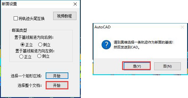 將基線發(fā)送到CAD中后,系統(tǒng)跳轉(zhuǎn)至CAD窗口,彈出提示“斷面初始化完畢,是否將數(shù)據(jù)發(fā)送到奧維”,點(diǎn)擊【是】按鈕,執(zhí)行發(fā)送。