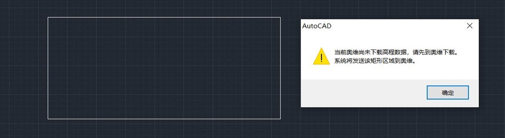 ☆說明:若用戶還未在奧維中下載該區(qū)域的高程數(shù)據(jù),會(huì)彈出相關(guān)提示,如下圖所示。您先前往奧維疊加高程,再返回到CAD中下載高程,即可。