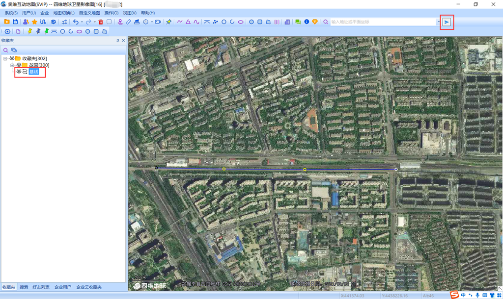 在奧維互動(dòng)地圖中,選擇繪制好的基線,點(diǎn)擊wps79按鈕,發(fā)送到CAD中。