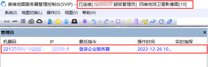 連接上服務(wù)器之后,管理員??看翱陲@示管理員機(jī)器所在機(jī)器碼和IP地址,標(biāo)題欄顯示已連接信息