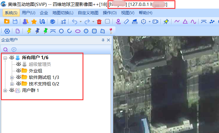 (2)登錄成功后,在奧維軟件界面【標(biāo)題欄】中,會顯示登錄企業(yè)服務(wù)器信息,在【企業(yè)用戶】欄中顯示企業(yè)用戶。
