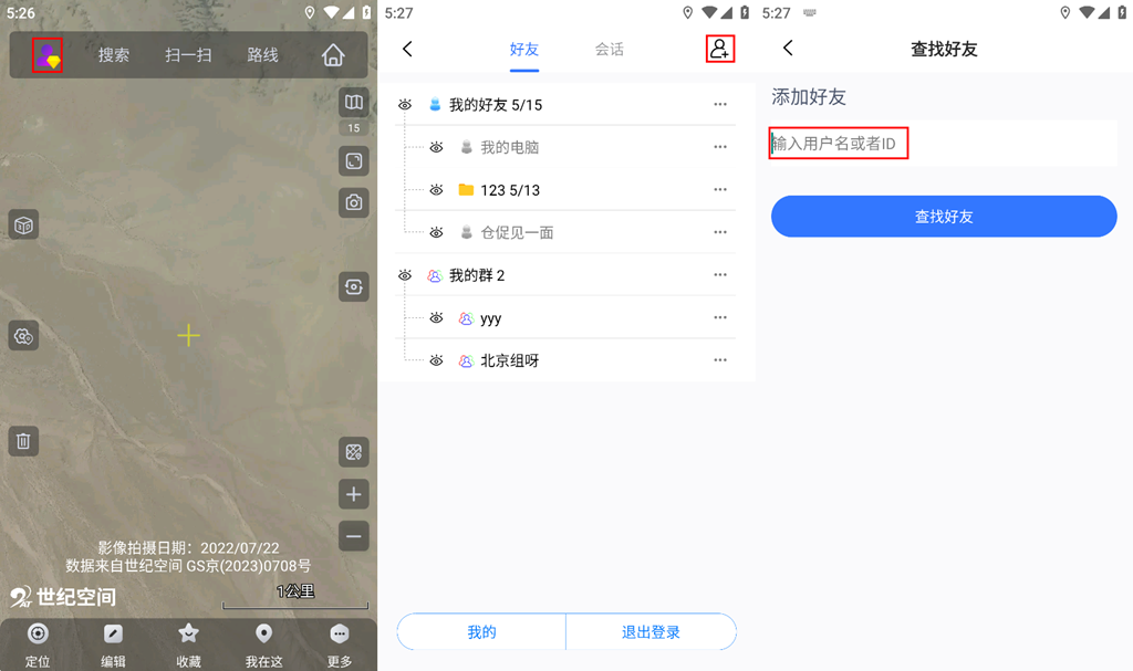 在奧維互動(dòng)地圖中,用戶可以將其他奧維用戶添加為好友,以實(shí)現(xiàn)通信、位置、數(shù)據(jù)分享等。