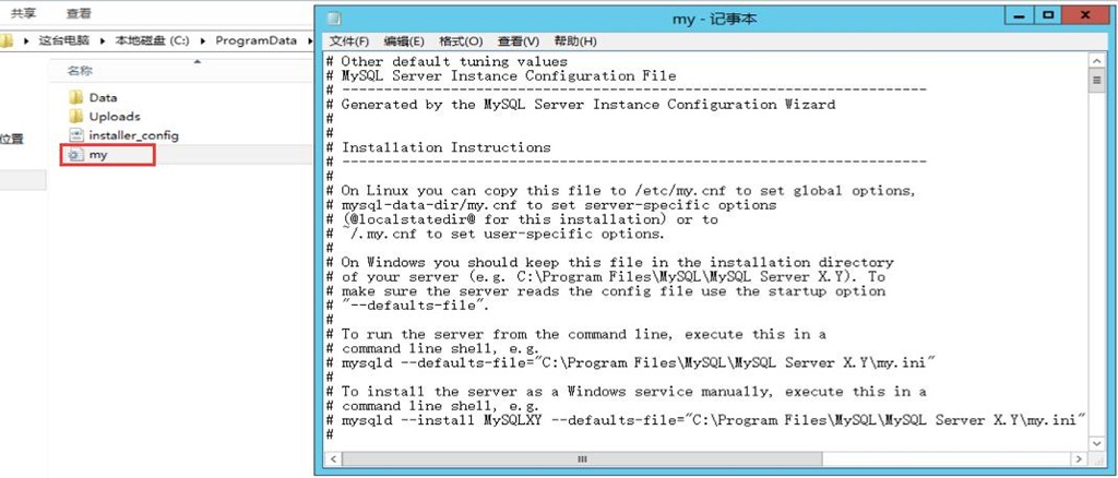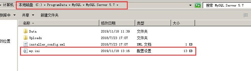 MySQL數據庫默認安裝在C盤,my.ini文件默認目錄C:\ProgramData\MySQL\MySQL server 5.7