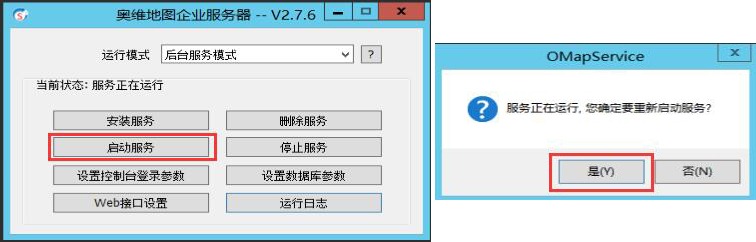 重啟MySQL服務后,一定要重啟奧維企業(yè)服務器。點擊【啟動服務】—>【是】,即可。