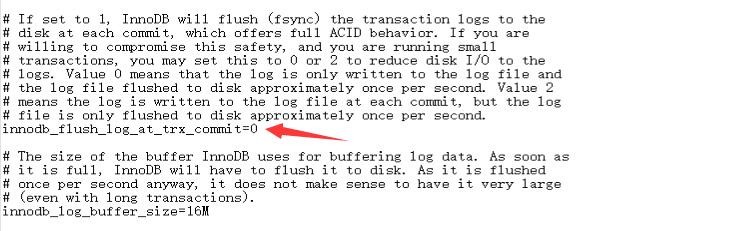 innodb_flush_log_at_trx_commit=0:每秒將日志緩沖區(qū)寫入log file,并同時flush到磁盤。跟事務提交無關。在機器crash并重啟后,會丟失一秒的事務日志數據(并不一定是1s,也許會有延遲,跟操作系統(tǒng)調度有關)。