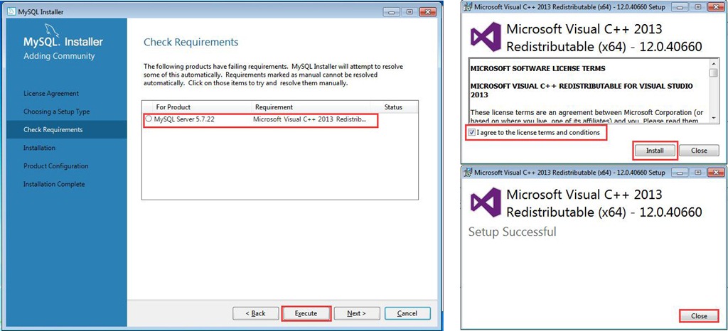 若您在公網(在線)環(huán)境下安裝,直接安裝MySQL數據庫軟件即可,在安裝的過程中,會自動安裝Microsoft Visual C++ 2013 Redistributable插件。