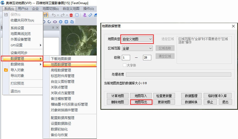 在奧維PC端中,點擊[系統(tǒng)]菜單,點擊【數(shù)據(jù)管理】,點擊【地圖數(shù)據(jù)管理】,進入[地圖數(shù)據(jù)管理]窗口。