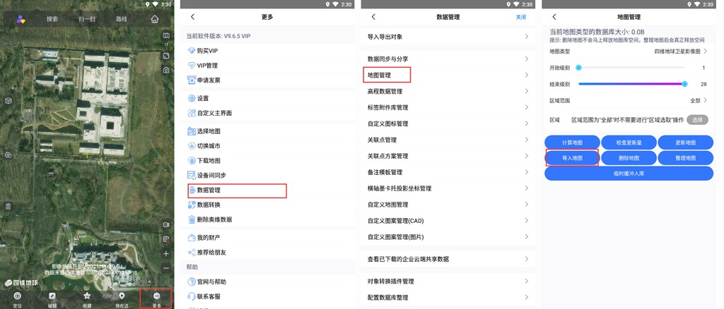 在奧維Android/iOS版主界面中,點擊【更多】,點擊【數(shù)據(jù)管理】,點擊【地圖管理】,進入[地圖管理]頁面。