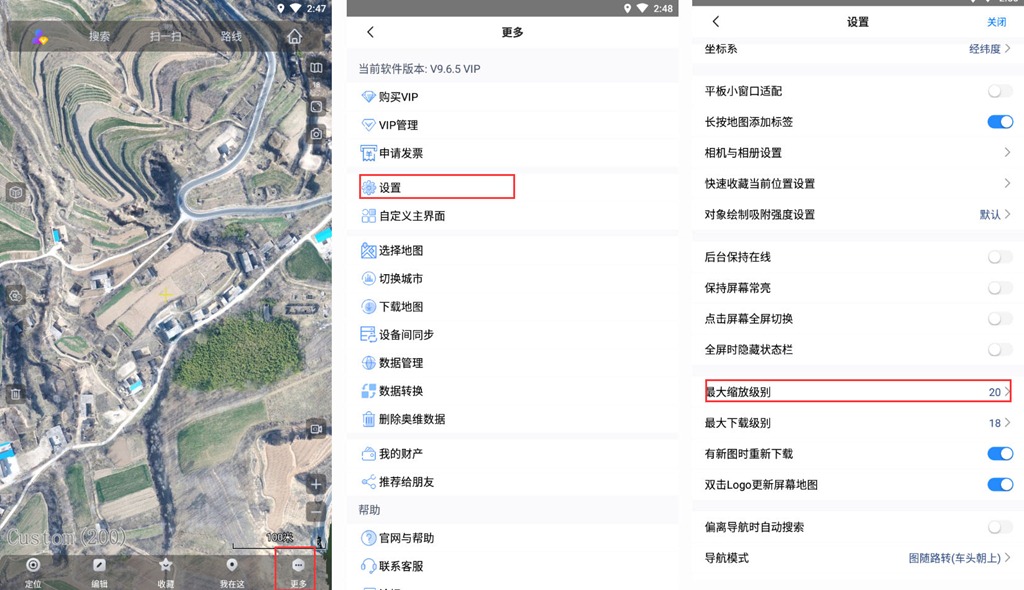 在奧維主界面上,點擊【更多】,點擊【設置】,點擊【高級功能】,點擊【最大縮放級別】,將級別調高即可。