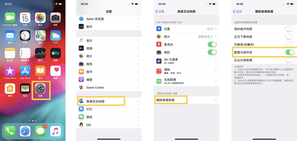 在手機桌面上,點擊【設(shè)置】,點擊【奧維互動地圖】,點擊【刪除奧維數(shù)據(jù)】,開啟【配置與附件庫】,即可。