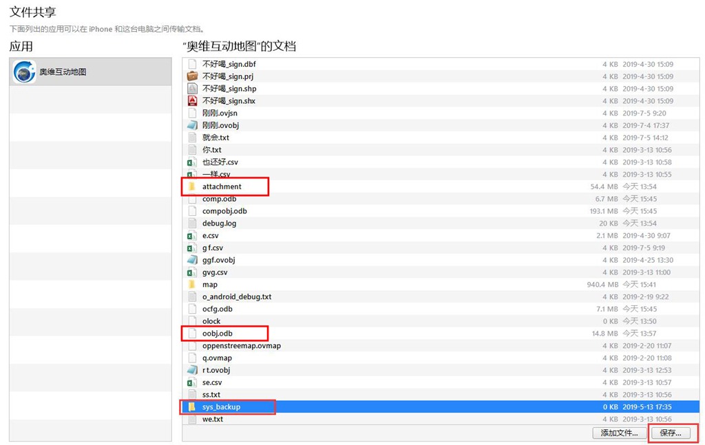連接成功后,點擊wps2按鈕,點擊【文件共享】,找到奧維互動地圖,將attachment、oobj.odb、sys_backup等文件或者文件夾保存到電腦上。