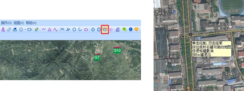 點擊工具欄中的【多邊形區(qū)域】按鈕,在地圖上繪制多邊形區(qū)域。