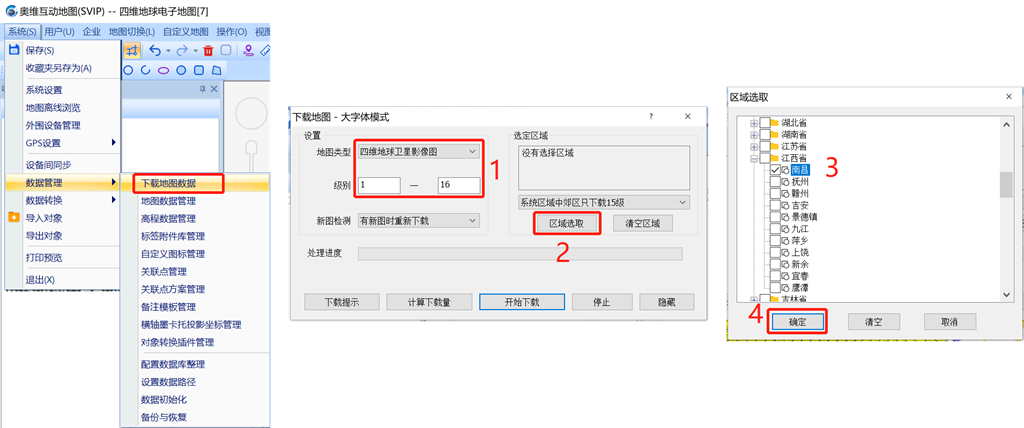 點擊[系統(tǒng)]→【數(shù)據(jù)管理】→【下載地圖數(shù)據(jù)】,進入[下載地圖]對話框。