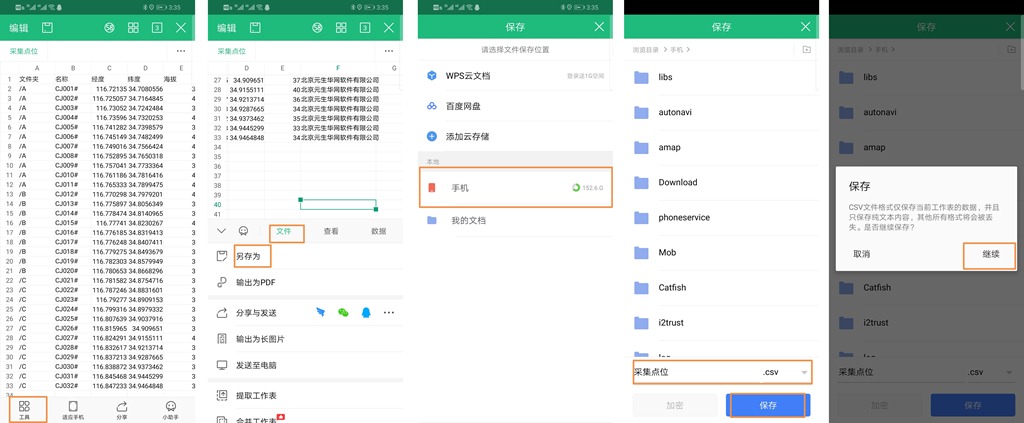 編輯完坐標(biāo)文件后,另存為CSV格式文件夾。