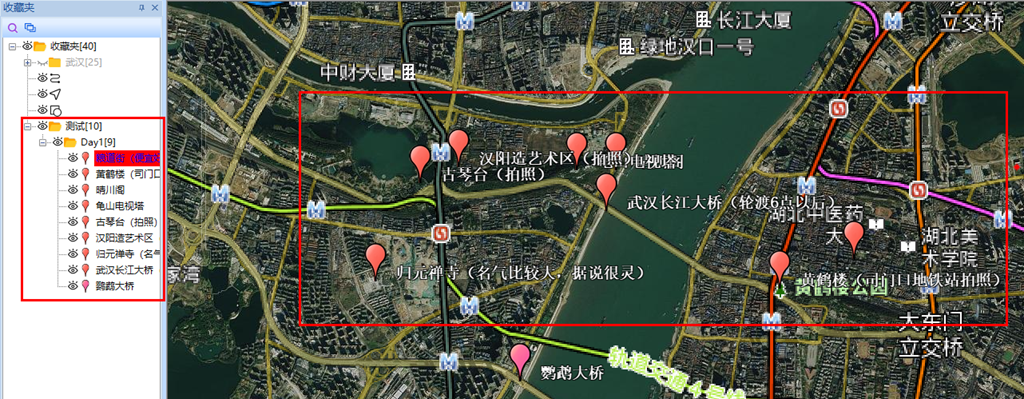 完成后,導(dǎo)入的坐標(biāo)點(diǎn)會(huì)自動(dòng)生成奧維標(biāo)簽對(duì)象,保存在收藏夾中,顯示在地圖上。