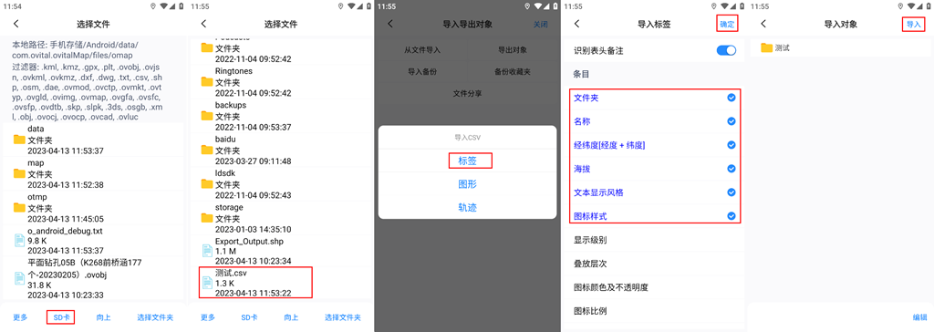 系統(tǒng)自動(dòng)打開(kāi)奧維根目錄,選擇CSV文件。如果用戶沒(méi)有將CSV保存在奧維根目錄下面,那么就點(diǎn)擊SD卡,找到保存CSV文件的目錄。