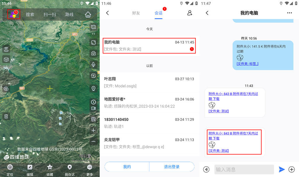 發(fā)送后,在手機(jī)上登錄賬戶,即可收到電腦端發(fā)送的數(shù)據(jù)。