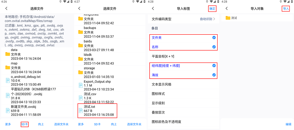 3. 手機(jī)端導(dǎo)入TXT坐標(biāo)文件