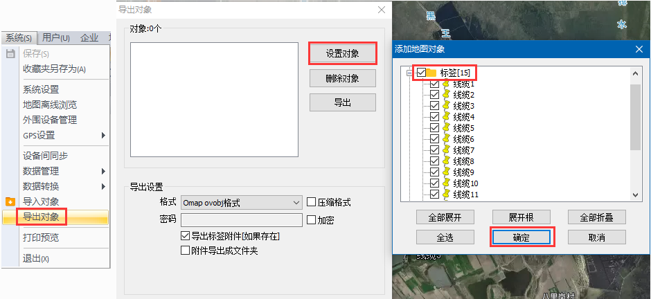 點擊[系統(tǒng)]菜單,點擊【導(dǎo)出對象】按鈕,點擊【設(shè)置對象】按鈕,批量勾選需要導(dǎo)出的對象,點擊【確定】按鈕。