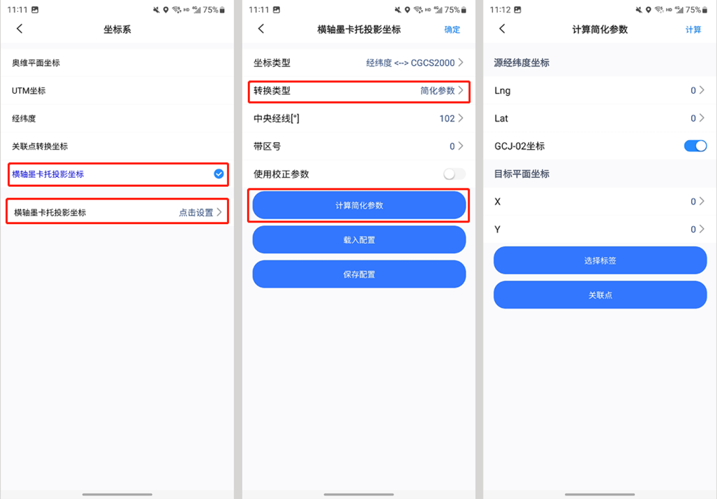 選擇【橫軸墨卡托投影坐標(biāo)】,點(diǎn)擊設(shè)置,進(jìn)入[橫軸墨卡托投影坐標(biāo)]頁(yè)面。