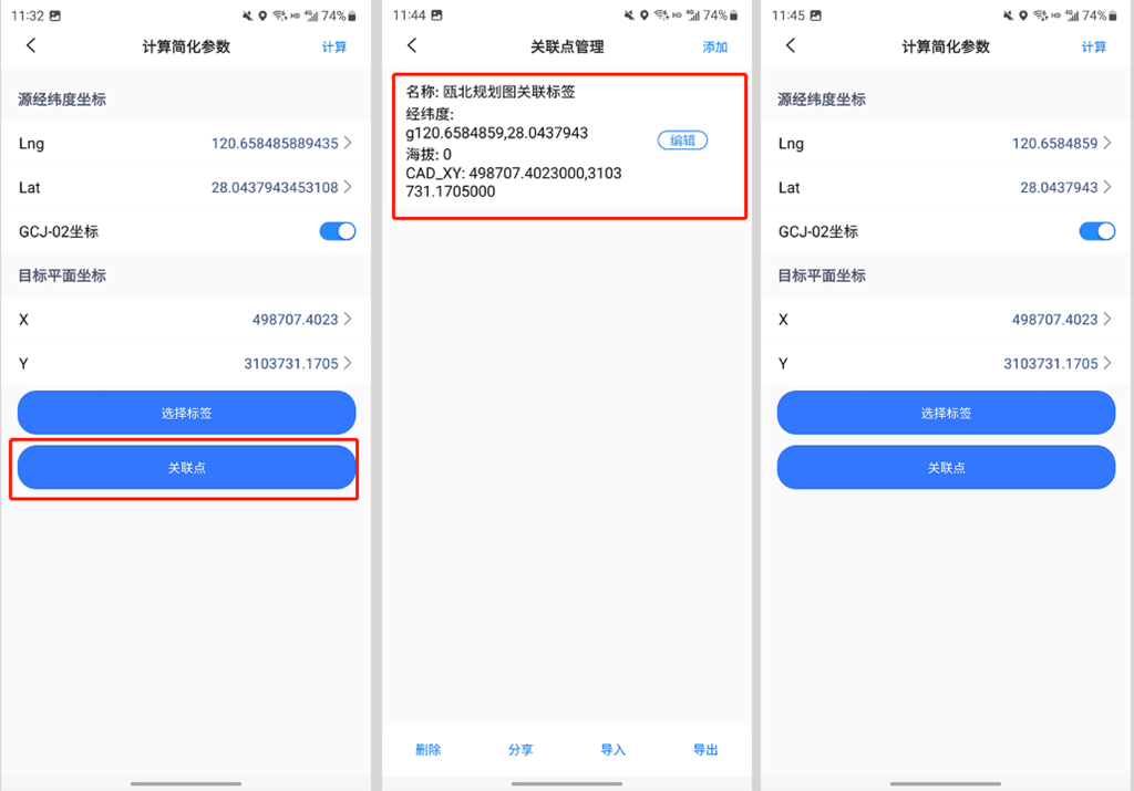 若用戶已有一個(gè)坐標(biāo)點(diǎn)的經(jīng)緯度坐標(biāo)和與之對(duì)應(yīng)的平面坐標(biāo),那么不需要再創(chuàng)建關(guān)聯(lián)標(biāo)簽,忽略此步驟。
