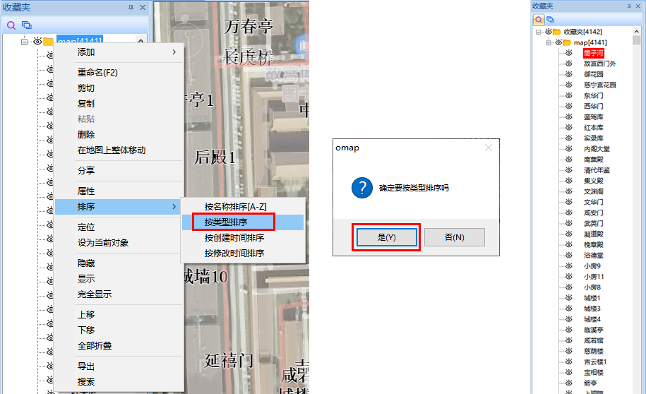在奧維中,可按名稱和類型對數(shù)據(jù)進行排序。其中,按類型排序的順序為標簽、軌跡、圖形……