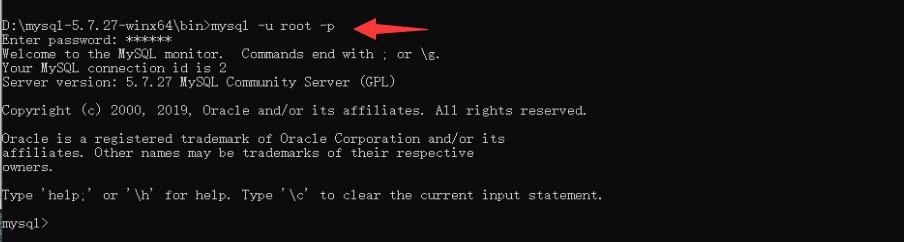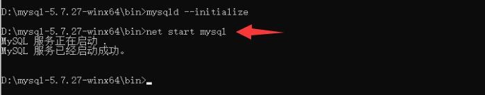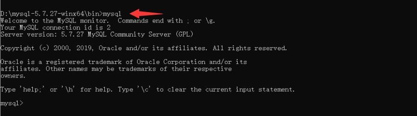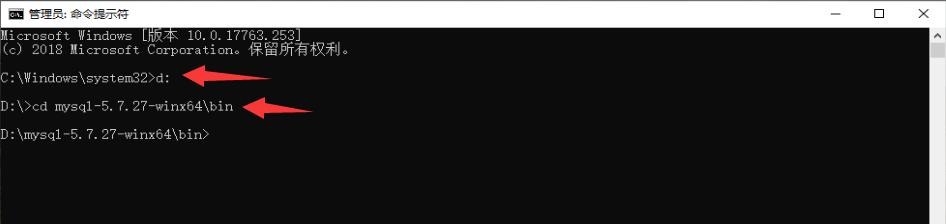 命令cd mysql-5.7.27-winx64\bin(進入bin目錄)