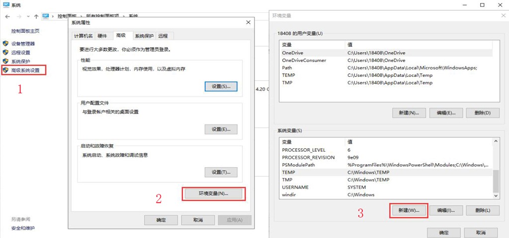 點擊【高級系統(tǒng)設置】,點擊【環(huán)境變量】,在【系統(tǒng)變量】欄目,點擊【新建】,創(chuàng)建MYSQL_HOME變量。