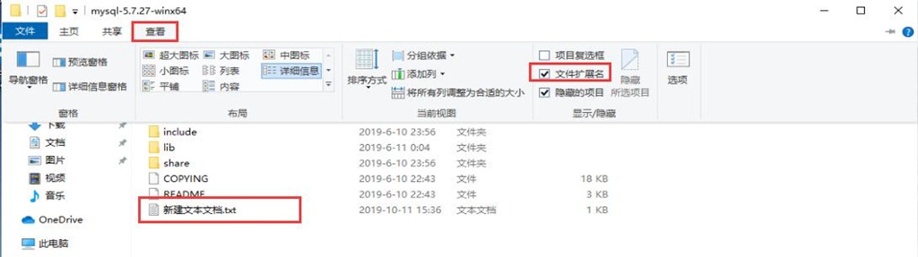 通常,擴展名是默認不顯示的,我們需要將擴展名顯示出來,便于修改,如下: