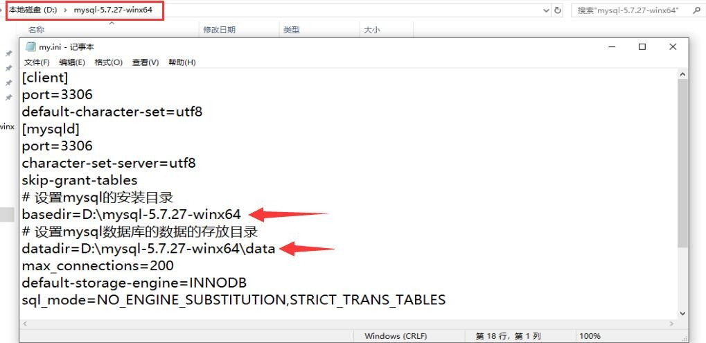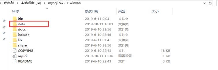 數(shù)據(jù)存放目錄(data目錄)須設置為datadir=D:\mysql-5.7.27-winx64\data