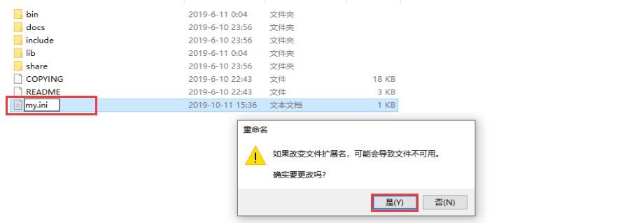 填寫好配置信息后保存,修改“新建文本文檔.txt”的文件名為“my.ini”。