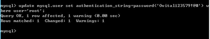 update mysql.user set authentication_string=password('Ovital123579!@#') where user='root';