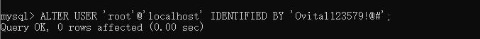 ALTER USER 'root'@'localhost' IDENTIFIED BY 'Ovital123579!@#';