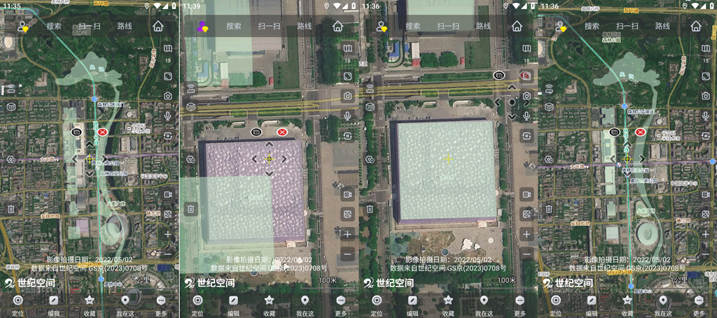 通過放大,縮小,移動(dòng)地圖等操作可將操作面板的“圓圈”按鈕移動(dòng)到參照對象處。