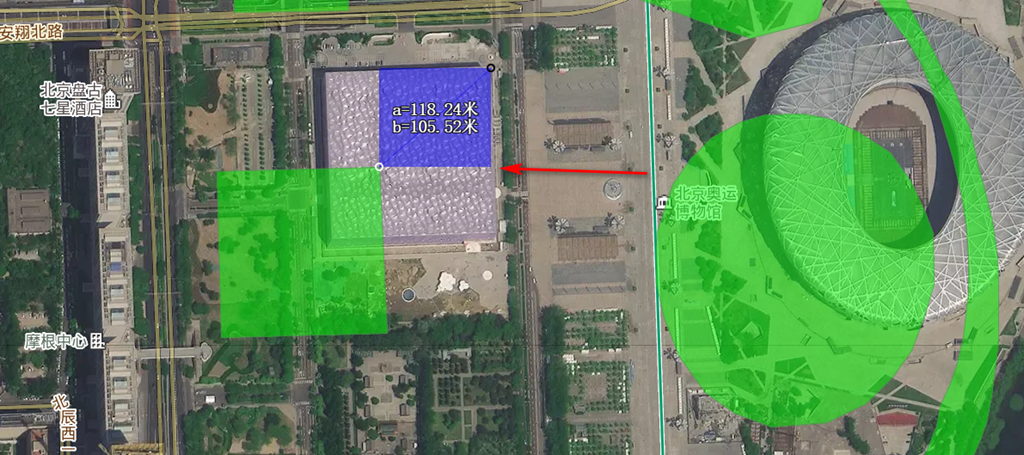 繪制完矩形后,立即會(huì)顯示這個(gè)位置的x偏移量(a:116.41)和y偏移量(b:106.89米)。