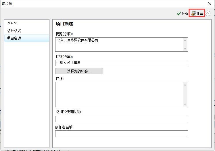 點擊[文件]菜單,點擊【共享為】,點擊【切片包】。