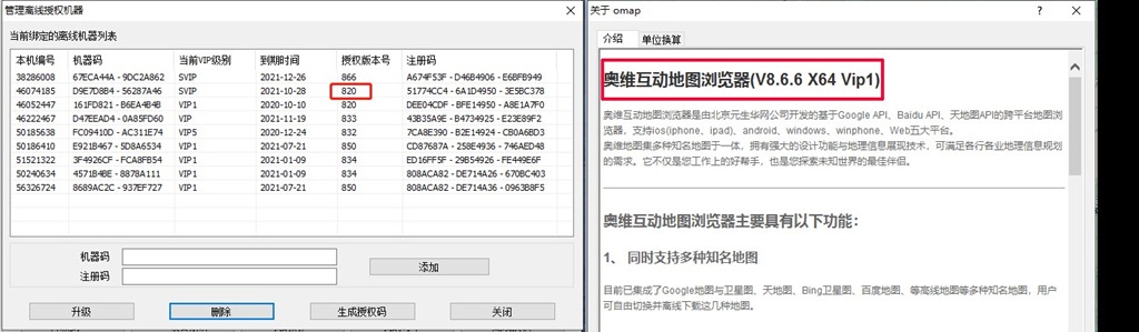 如下圖所示,對于內網電腦,以前授權的軟件版本號是8.2.0,現在奧維軟件更新到了8.6.6版。我們下面重新授權。