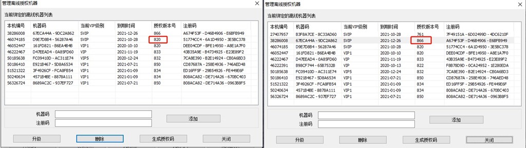 我們可以看到,該機器的授權版本號會變成866,即當前電腦B上安裝的奧維軟件版本。