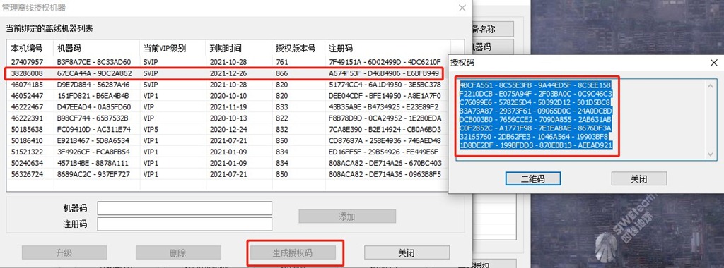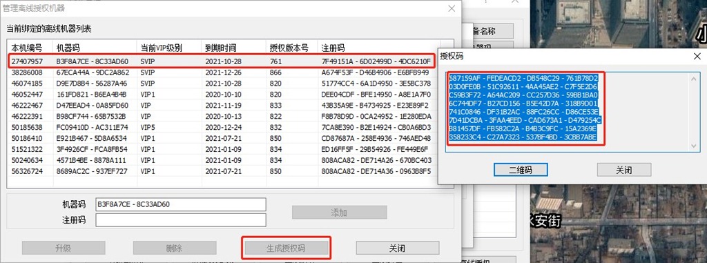 在[管理離線授權機器]窗口中選擇該機器,點擊【生成授權碼】,即可生成新的授權碼。