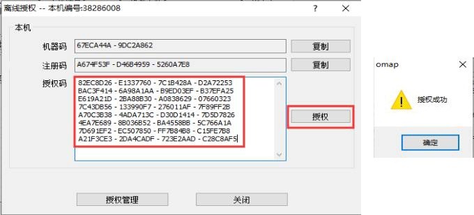在[離線授權]窗口中,將文件中的授權碼復制粘貼到【授權碼】欄中,點擊【授權】,即可。