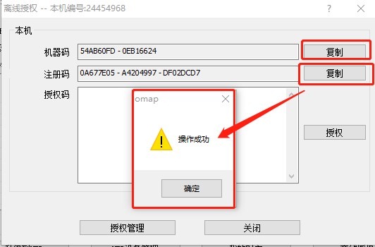 點擊【復制】,分別復制機器碼和注冊碼。