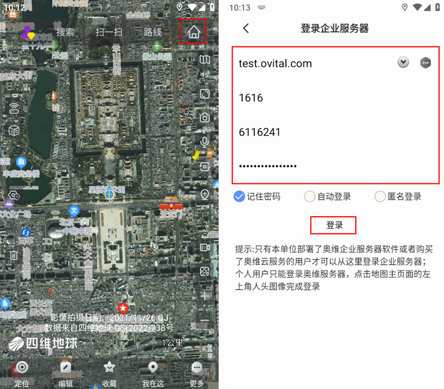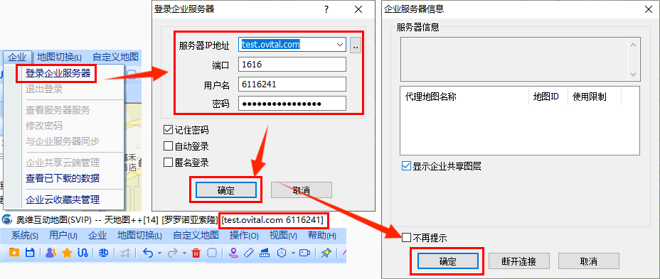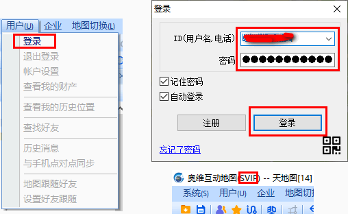 將用戶添加到企業(yè)服務(wù)器(或者奧維云服務(wù))中后,就可以在客戶端(奧維互動(dòng)地圖)中登錄企業(yè)服務(wù)器。