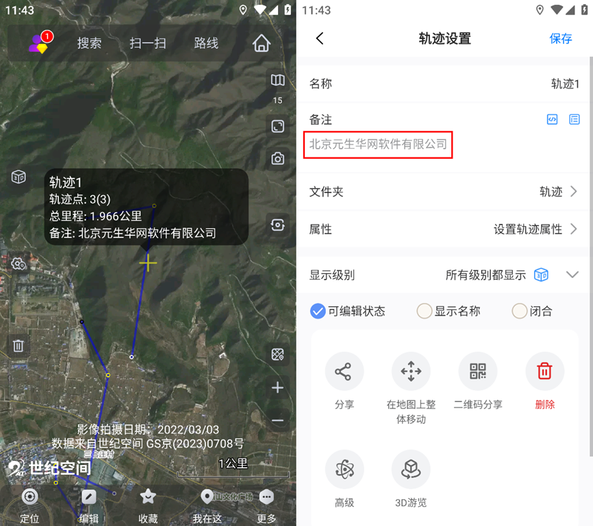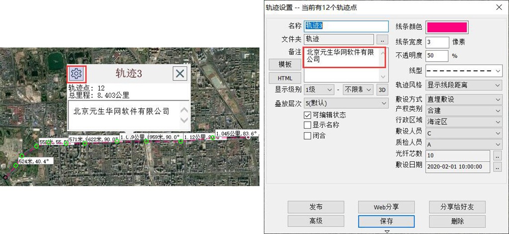 如果您還需要對軌跡進(jìn)行補(bǔ)充說明,可填寫在[軌跡設(shè)置]的備注欄中,一起導(dǎo)出到表格中。