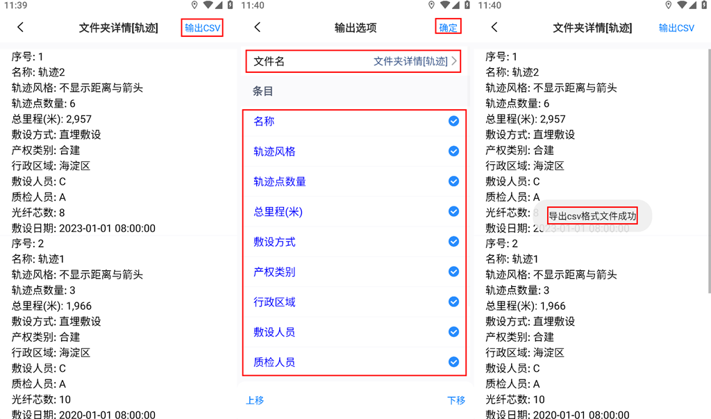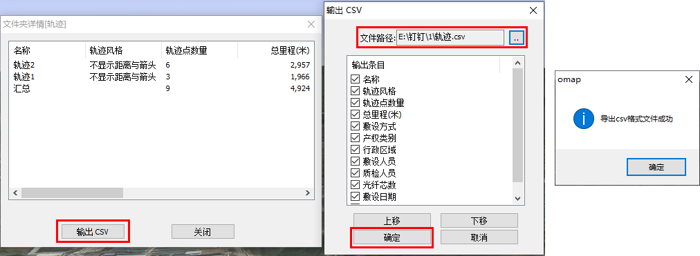 點(diǎn)擊【輸出CSV】,設(shè)置文件路徑和輸出條目(勾選需要導(dǎo)出的屬性字段),點(diǎn)擊【確定】,即可導(dǎo)出。