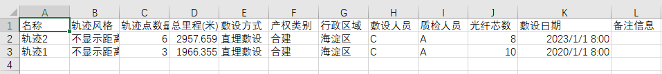 在上圖中,導(dǎo)出的字段有“備注信息”,該信息是在[軌跡設(shè)置]的備注欄中填寫的。