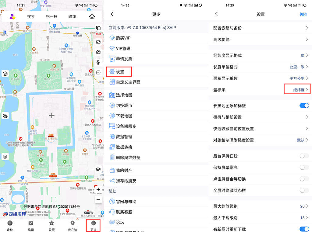 在手機(jī)端主界面,點(diǎn)擊【更多】→【設(shè)置】→【坐標(biāo)系】。