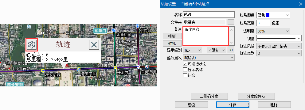 如果您還需要對軌跡進(jìn)行補(bǔ)充說明,可填寫在[軌跡設(shè)置]的備注欄中,一起導(dǎo)出到表格中。