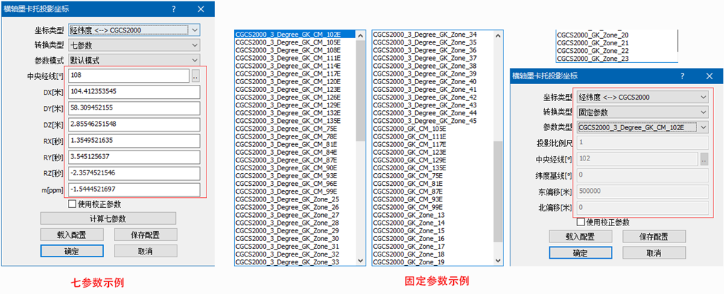 ★若用戶需要不含帶號的坐標(biāo),那么應(yīng)選擇帶有中央經(jīng)線的參數(shù)。