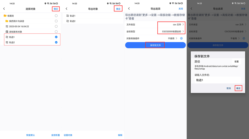 勾選需要導(dǎo)出的軌跡對象,點(diǎn)擊【確定】。