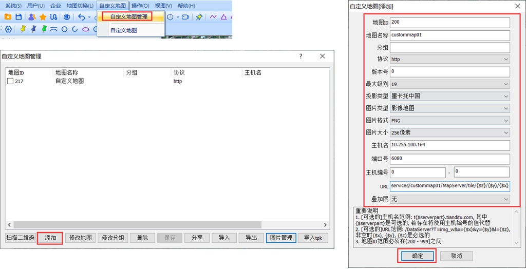②【地圖名稱】:用戶自己設(shè)置,本文為“custommap01”。